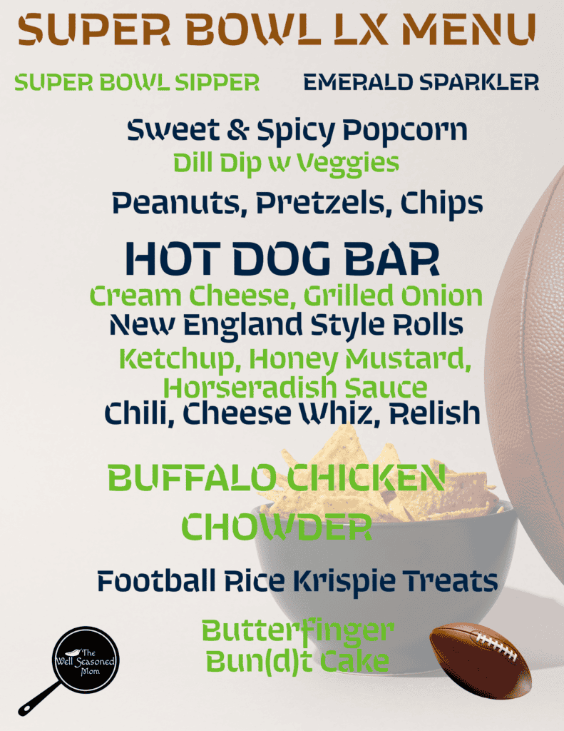 This menu can be easily adapted for any two teams playing on any Sunday of the year – it does not have to be Super Bowl Sunday. It doesn’t even have to be football. As always, here are the standard entertaining strategies: