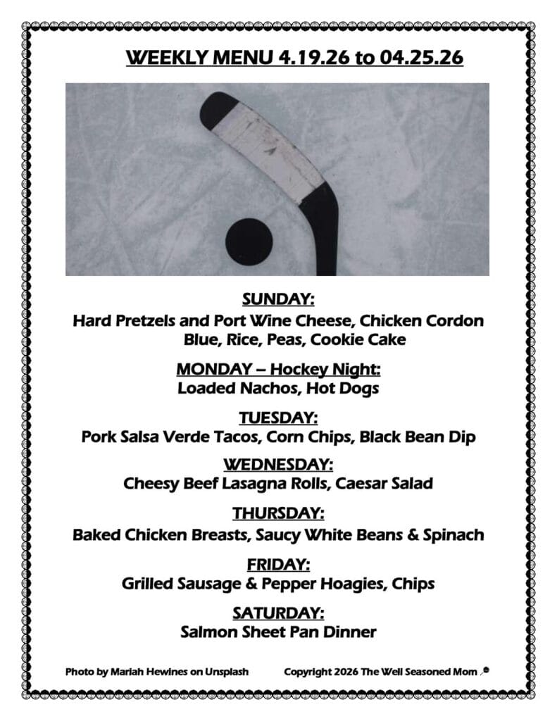 How did Hot Dogs make it onto the Weekly Menu 04.19.26? It’s hockey playoff season, and “our” team, the Pittsburgh Penguins, actually made the cut.