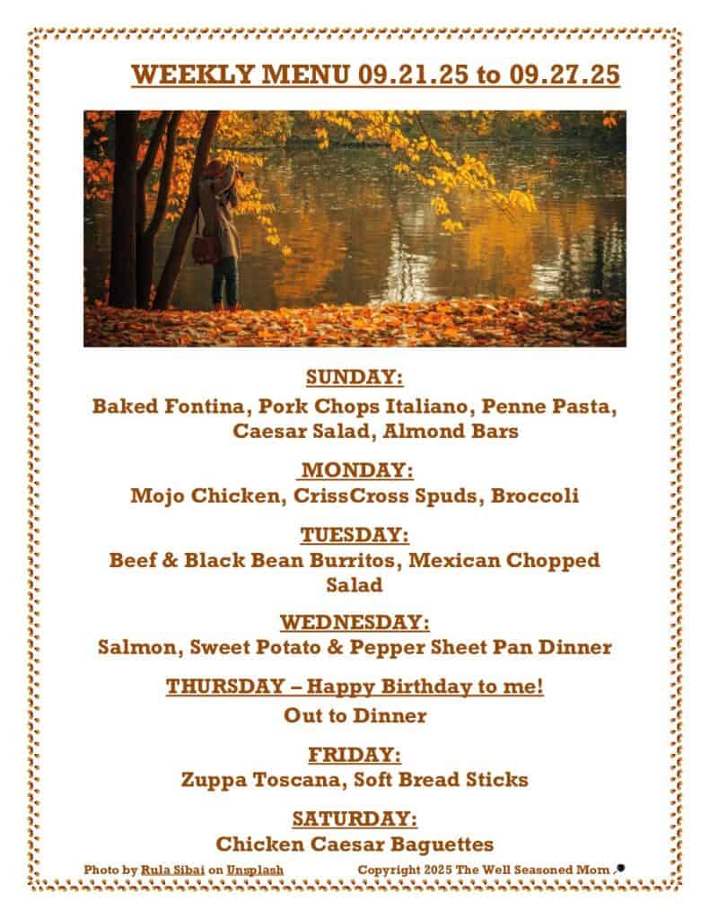 Fall arrives during the Weekly Menu 09.21.25 – and so does my birthday!